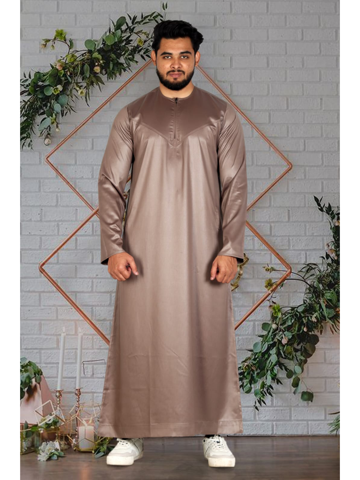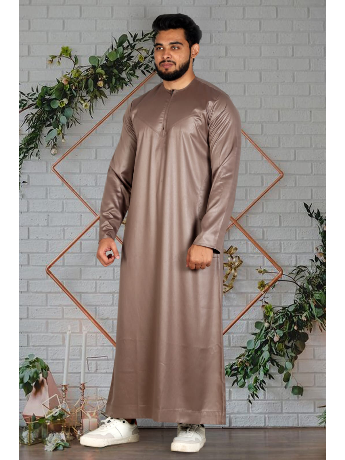Light Brown Silky Omani Thobe by Qamar Clothing UK, a stunning piece that combines traditional elegance with modern style. Crafted from high-quality polyester, this thobe features a sleek, shiny Light Brown finish that radiates sophistication. Perfect for casual wear, it offers unparalleled comfort while ensuring you stand out with its unique shine. Its machine washable fabric makes it easy to care for, making this thobe a practical yet stylish addition to any wardrobe.