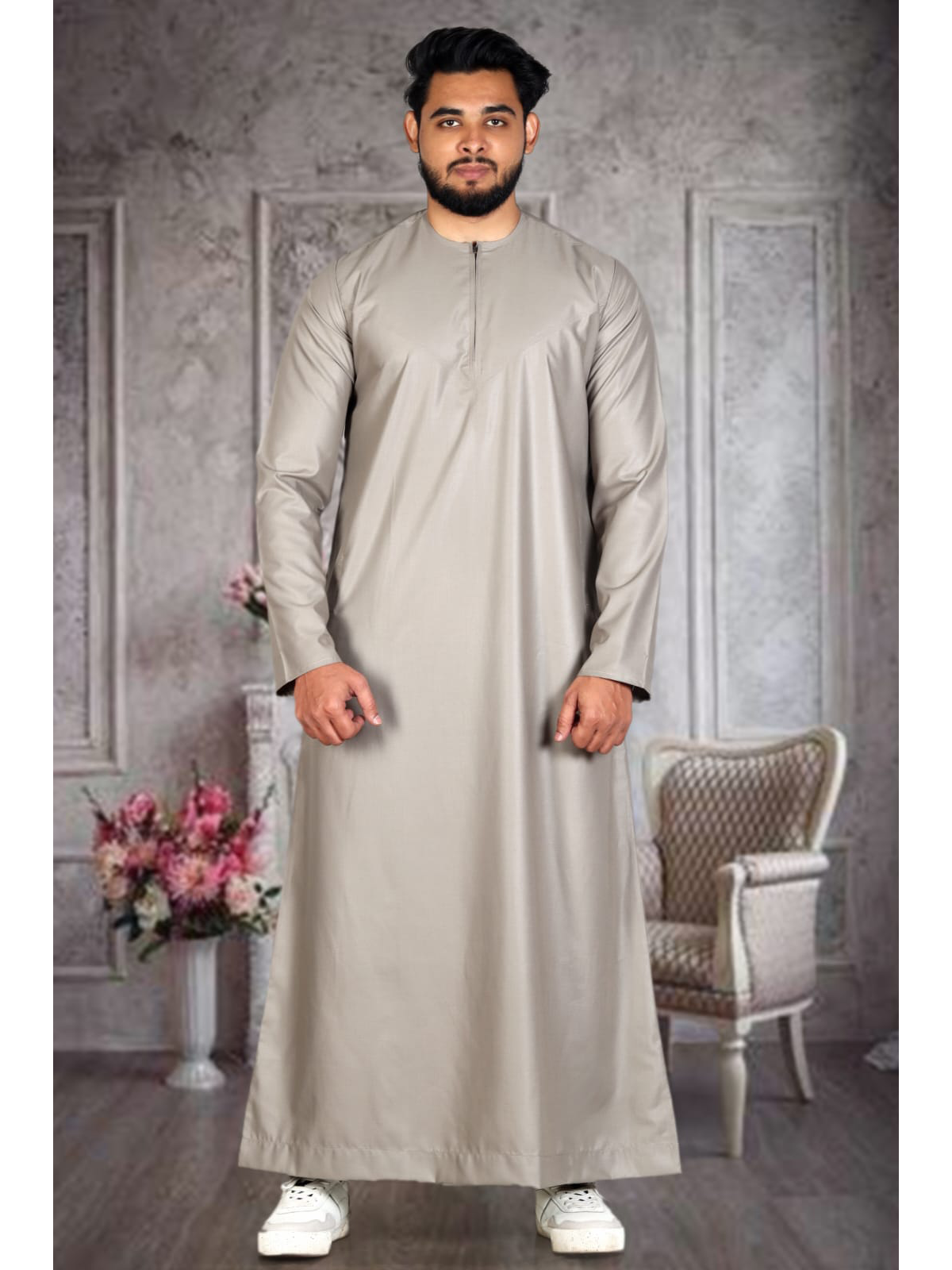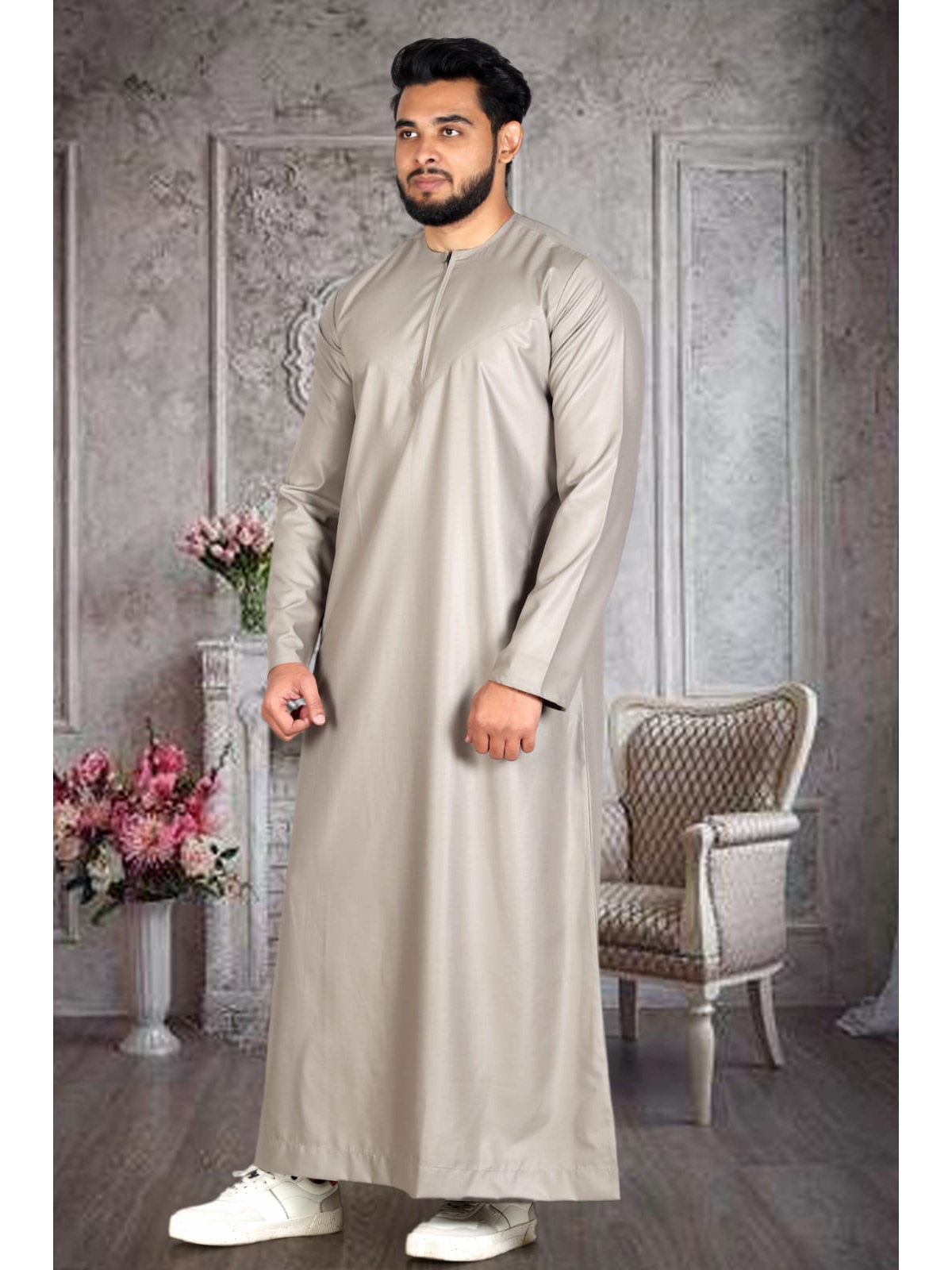 Beige Matte Omani Thobe by Qamar Clothing UK, a timeless garment that seamlessly blends tradition with contemporary style. Crafted from premium 100% polyester, this thobe boasts a luxurious matte Beige hue that exudes sophistication. Designed for casual wear, it offers both comfort and elegance in equal measure. Whether you're attending a gathering or simply going about your day, this thobe ensures you make a statement with its refined simplicity. Plus, with its machine washable fabric, caring for this garment is effortless, adding practicality to its charm.