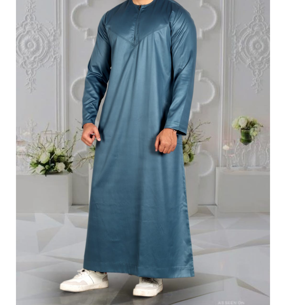 Teal Green Silky Omani Thobe by Qamar Clothing UK, a stunning piece that combines traditional elegance with modern style. Crafted from high-quality 100% polyester, this thobe features a sleek, silky Teal Green finish that radiates sophistication. Perfect for casual wear, it offers unparalleled comfort while ensuring you stand out with its unique shine. Its machine washable fabric makes it easy to care for, making this thobe a practical yet stylish addition to any wardrobe.